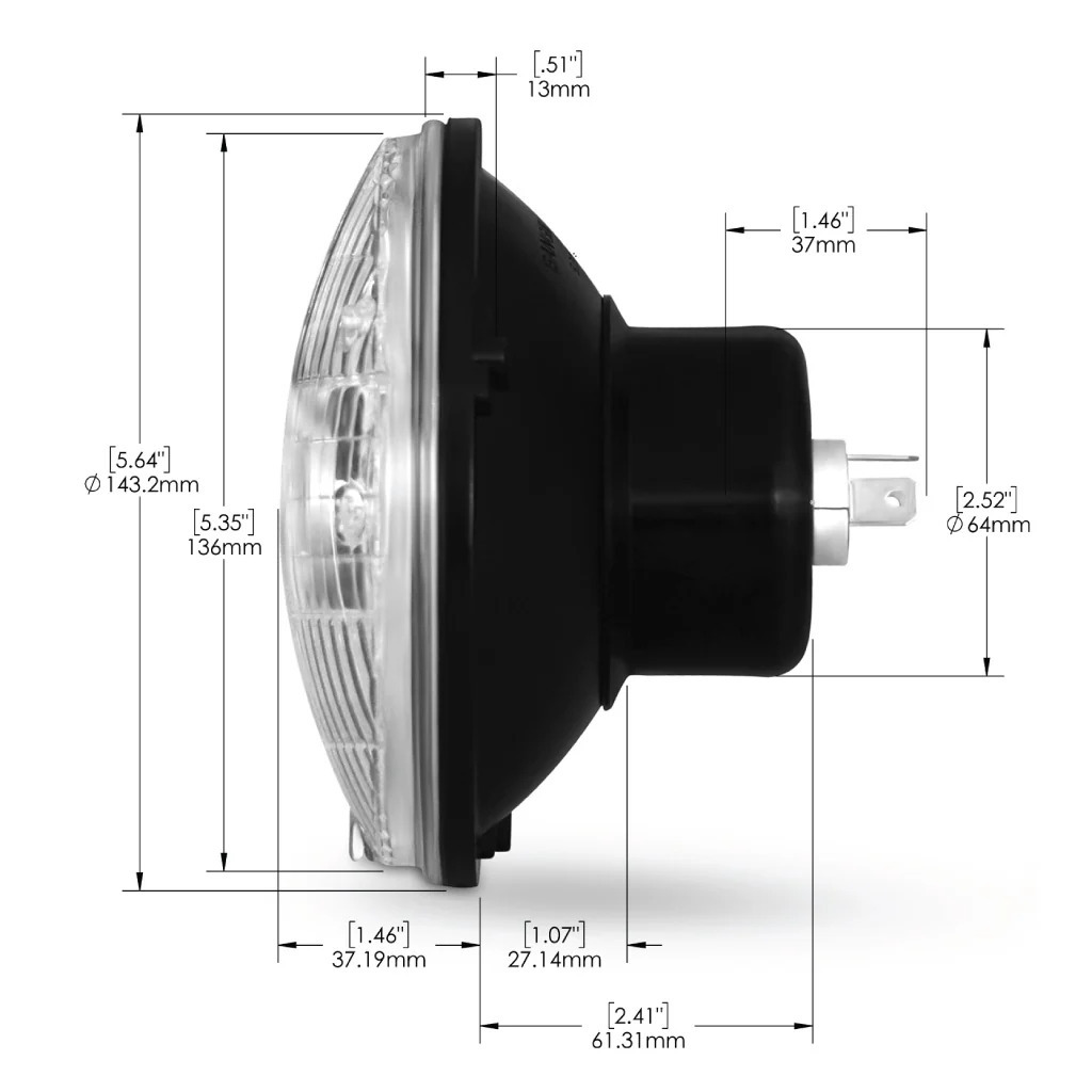 5.75" Chrome – Low/High Beam Classic 5.75" chrome headlight with modern LED technology. Designed to replace traditional sealed beam units and fit directly into the original mounting on classic cars and pickups. Specifications: Function: Low beam / High beam Diameter: 5.75" Lens: Real glass Light source: LED projector Color temperature: 4300K (warm white) Voltage: 12 V Power: 13 W (approx. 1.1 A) Beam pattern: Right-hand traffic Approval: E-marked Installation: Plug & Play – no relays or additional wiring required Package includes: 1 × 5.75" Chrome LED headlight, low/high beam Provides clear and stable lighting without glare while maintaining the classic sealed beam appearance. A perfect upgrade for classic cars, hot rods, and pickups.